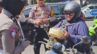 Sosialisasikan Ops Patuh Semeru 2025, Satlantas Polres Bondowoso Bagikan Makanan khas Daerah Gratis