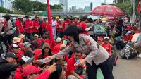 Gelar Aksi Simpatik, Polisi Bagikan Roti dan Air Mineral ke Massa Aksi di DPR