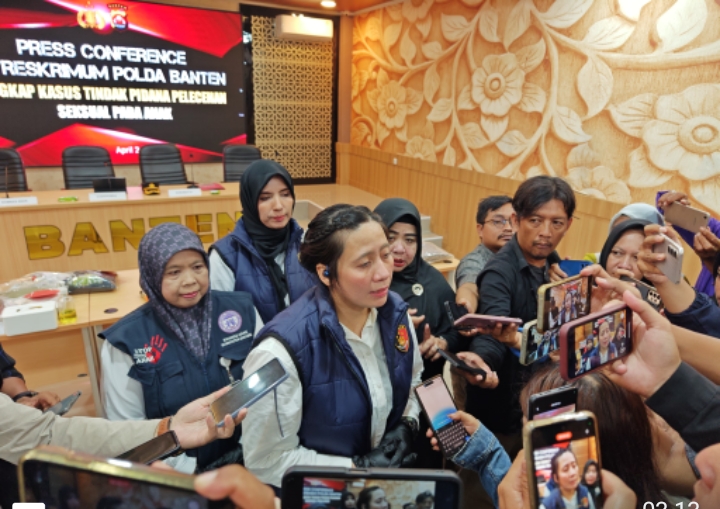 Dalam Press Conference yang di gelar Ruang Ditreskrimum Polda Banten pada Senin (20/04). Kegiatan dipimipin oleh Kabid Humas Polda Banten Kombes Pol Maruli Ahiles Hutapea didampingi Kasubdit IV Renakta Ditreskrimum Polda Banten AKBP Irene Missy dan dihadiri oleh perwakilan Komnas Perlindungan Anak Kabupaten Serang.