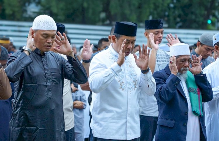 86NEWS.ID – NTT – Kapolda NTT Irjen Pol Dr. Rudi Darmoko, S.I.K., M.Si., melaksanakan ibadah Shalat Idul Adha 1446 H bersama ribuan jamaah memadati lapangan sejak pagi hari. Selain personel kepolisian dan keluarga besar Polda NTT, tampak pula masyarakat sekitar yang dengan antusias mengikuti jalannya ibadah di Lapangan Bhayangkara Mapolda NTT, Jumat (6/6/25).