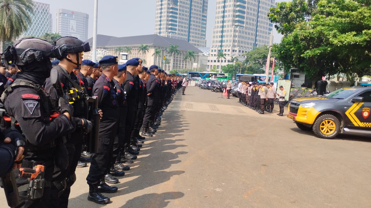 Dansat Brimob Polda Metro Jaya, Kombes Pol. Henik Maryanto, S.I.K., M.Si., menegaskan, “Kami siap mengawal jalannya demokrasi yang damai dan memastikan keamanan masyarakat tetap terjaga.”