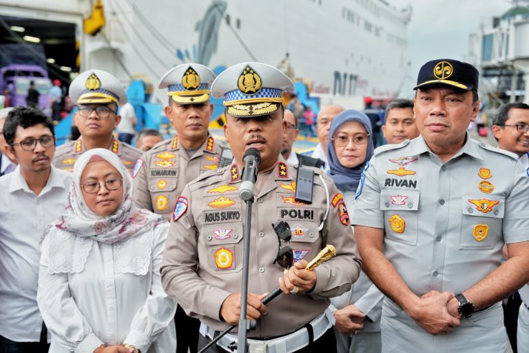 “Maka dari itu, kami hadir di Surabaya untuk melakukan koordinasi dan kolaborasi memastikan bahwa rencana-rencana pengamanan baik yang berada di jalan tol, jalan nasional, termasuk tempat-tempat penyeberangan baik penumpang dan barang,” ungkapnya.