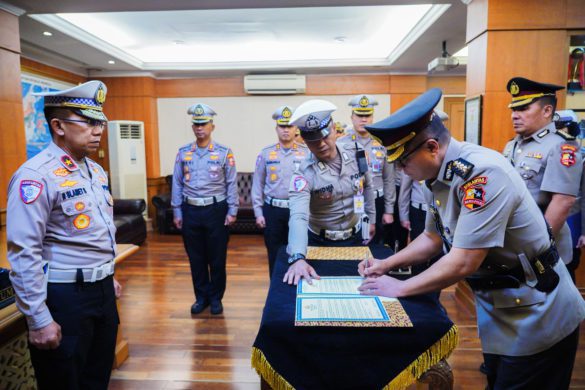 86NEWS.ID – JAKARTA – Dirgakkum Korlantas Polri Brigjen Pol Raden Slamet Santoso memimpin upacara serah terima jabatan Kasubdit Laka Ditgakkum Korlantas Polri di Ruang Kerja Dirgakkum Korlantas Polri, Jakarta, Selasa (15/4/2025).