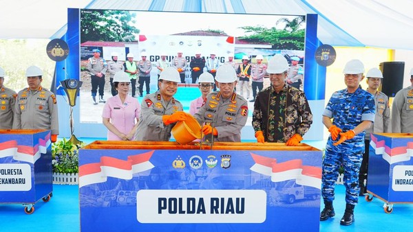 Pelaksanaan groundbreaking SPPG dilakukan secara simbolis oleh Kapolri Jenderal Sigit yang kemudian diikuti oleh Kapolda Riau Irjen Herry Heryawan serta Kapolres jajaran, di Mapolda Riau, Jalan Pattimura, Kota Pekanbaru, Minggu (13/7/2025).
