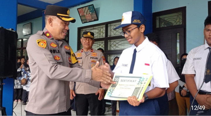 86NEWS.ID – JAKARTA – Dalam mendukung program “Senin Pintar” Polres Metro Jakarta Timur, Kapolsek Cipayung Kompol Dwi Susanto, melakukan kegiatan binluh (bimbingan dan penyuluhan) kepada siswa – siswi di SMPN 46 Jl. SPG 7 RW 09 Kel. Lubang Buaya Kec. Cipayung Jakarta Timur. Senin (03/02/25) pagi.