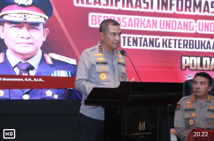 86NEWS.ID -MATARAM – Kapolda NTB Irjen Pol. Hadi Gunawan membuka kegiatan Bimbingan Teknis (Bimtek) dan Uji Konsekuensi Informasi Publik yang digelar Divisi Humas Polri. Kegiatan ini mengusung tema “Klasifikasi Informasi yang Dikecualikan Berdasarkan UU Nomor 14 Tahun 2008 tentang Keterbukaan Informasi Publik”.