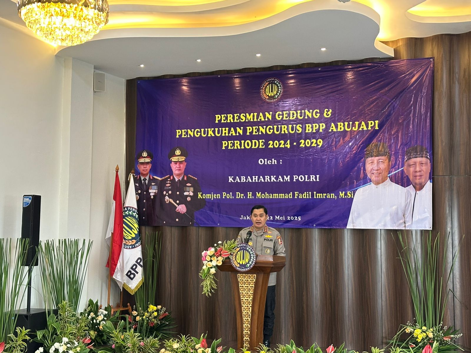 86NEWS.ID – JAKARTA – Kepala Badan Pemelihara Keamanan (Kabaharkam) Polri, Komjen Pol Drs. Muhammad Fadil Imran, M.Si., menghadiri langsung acara pengukuhan pengurus Badan Pengurus Pusat Asosiasi Badan Usaha Jasa Pengamanan Indonesia (BPP Abujapi) Jakarta yang digelar di Graha Awaloedin Djamin, Ciganjur, Jakarta Selatan, Kamis (22/5/2025).