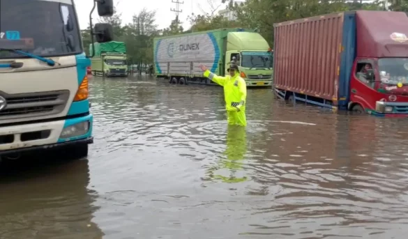 86NEWS.ID – SEMARANG – Jalur Pantura Kaligawe, Semarang, masih terendam banjir dengan ketinggian air mencapai 50–70 sentimeter. Kondisi ini menyebabkan kendaraan kecil dan sedang kesulitan melintas, sementara truk besar masih bisa melintas dengan kecepatan rendah, Selasa (28/10/2025).