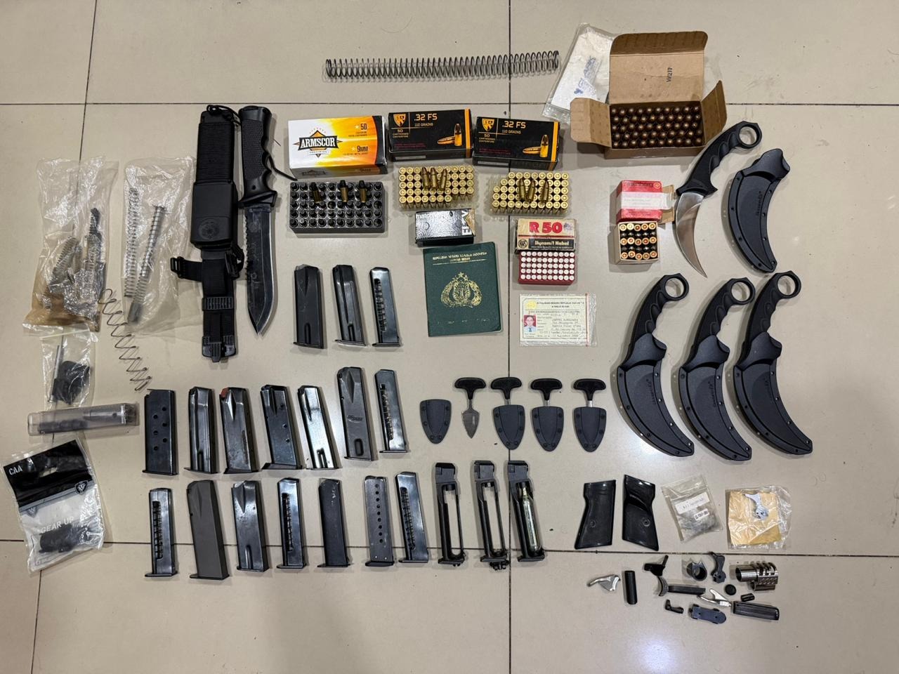 Selanjutnya, dari hasil penggeledahan di lokasi, petugas menemukan ratusan butir amunisi dari berbagai kaliber, mulai dari 9 mm, 22 mm hingga 45 mm. Selain amunisi, polisi juga turut menyita 17 magazine senjata api, 3 magazine airsoft, satu buku senpi, serta dua bok sparepart pistol. Seluruh barang bukti tersebut langsung dibawa ke Polda Metro Jaya guna pemeriksaan lanjutan.