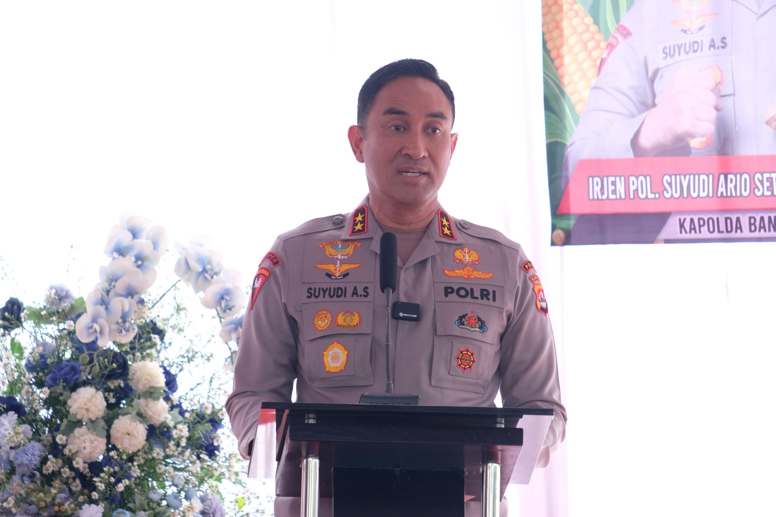“Keberadaan polisi untuk menjadikan masyarakat hidup aman. Saya menjamin keamanan warga masyarakat Banten terutama pedagang dan pengusaha, ” ujar Irjen Pol. Suyudi.