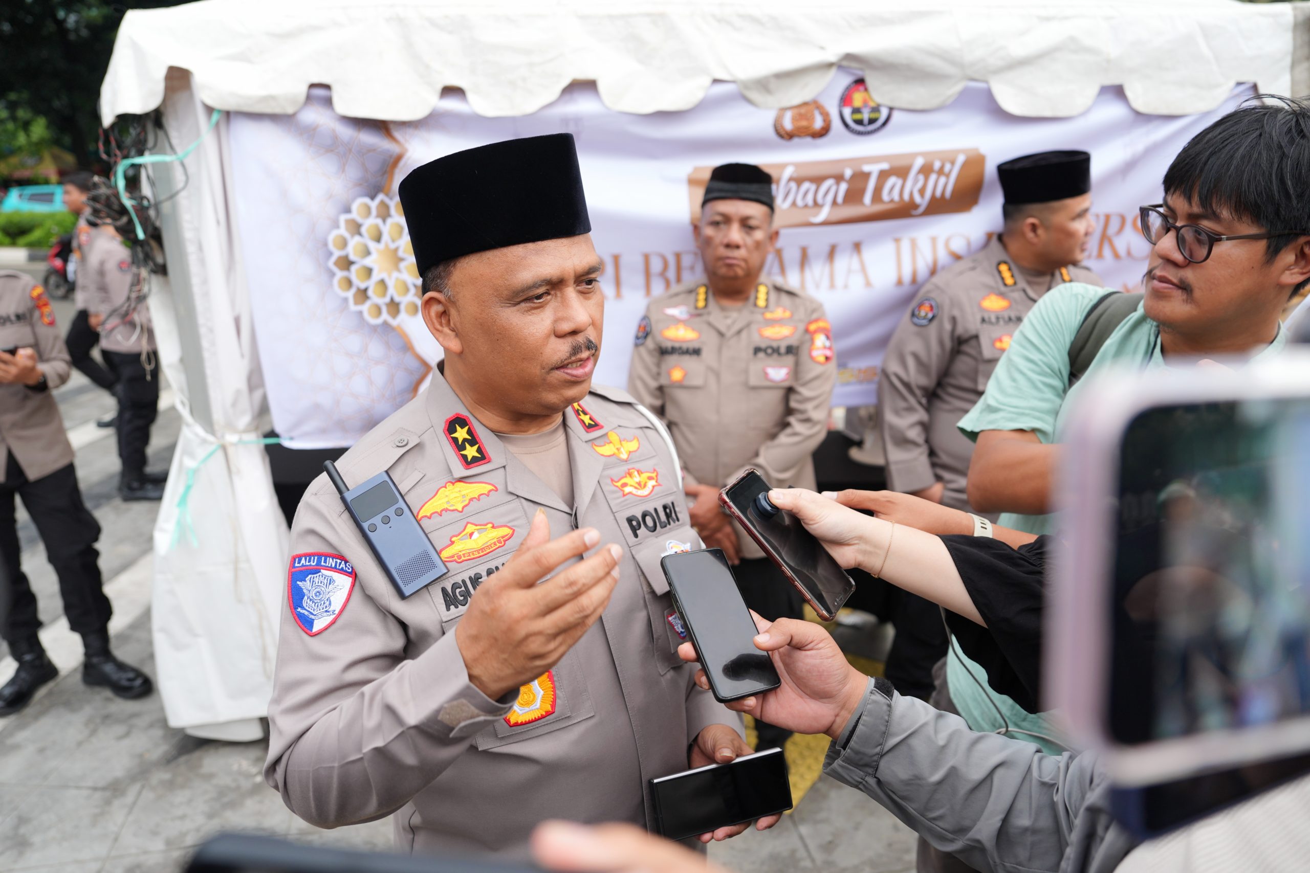 “Operasi Ketupat 2026 bukan hanya operasi di bidang lalu lintas, bukan berkaitan dengan mudik dan balik tetapi operasi ketupat adalah Polri hadir untuk menjaga momen sosial, baik spiritual, rangkaian bulan suci Ramadan, dan idul fitri harus aman,” ujar Kakorlantas Polri Irjen Pol Drs. Agus Suryonugroho, S.H., M.Hum., saat membagikan takjil di Lingkungan Mabes Polri.