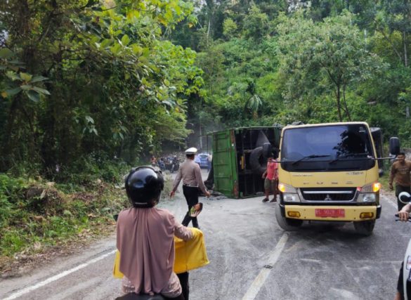 Kecelakaan tersebut melibatkan satu unit truk tronton Hino BL 8627 TZ yang mengalami rem blong dan terbalik di jalan menikung kawasan pegunungan, Rabu, 25 Juni 2025.