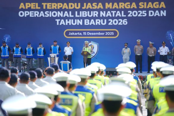 86NEWS.ID – JAKARTA – Kakorlantas Polri Irjen Pol Drs. Agus Suryonugroho, S.H., M.Hum., memimpin Apel Terpadu Jasa Marga Siaga Operasional Libur Natal 2025 dan Tahun Baru 2026 di Lapangan Sasono Utomo, TMII pada Senin (15/12/2025).