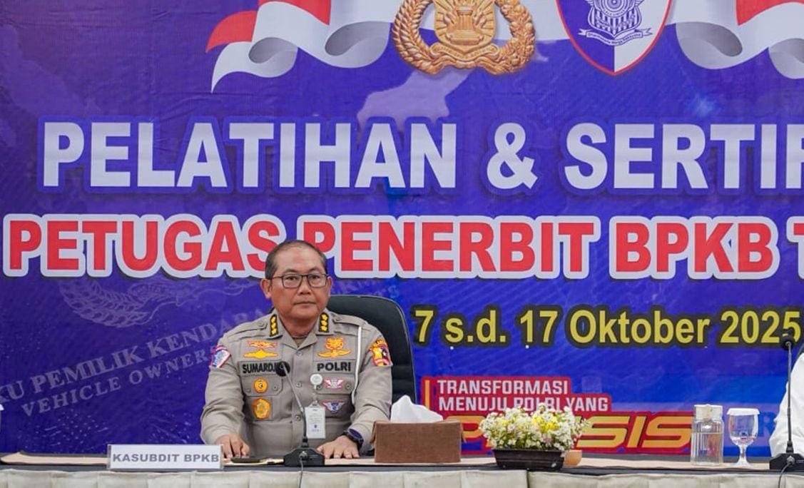 86NEWS.ID – JAKARTA – Kegiatan Sertifikasi Petugas Penerbit Buku Pemilik Kendaraan Bermotor (BPKB) Tahun Anggaran 2025 resmi dibuka pada Selasa (14/10/2025) di Cililitan, Jakarta. Pembukaan dilakukan langsung oleh Kasubdit BPKB Ditregident Korlantas Polri, Kombes Pol Sumardji. Kegiatan ini menjadi langkah strategis dalam mendukung transformasi digital layanan kepolisian, termasuk implementasi BPKB elektronik.