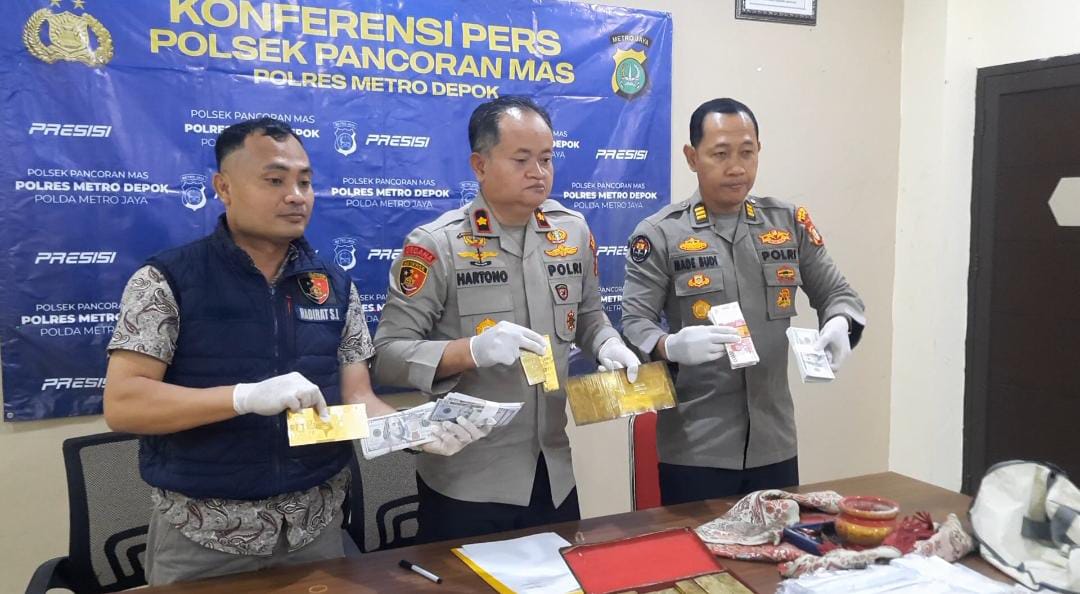 “Pelaku berinisial LE, laki-laki usia 50 tahun, telah kami amankan terkait dugaan tindak pidana penipuan dengan modus ritual penggandaan uang,” ujar Hartono kepada awak media, di Mapolsek Pancoran Mas pada Jumat (14/03/2026).