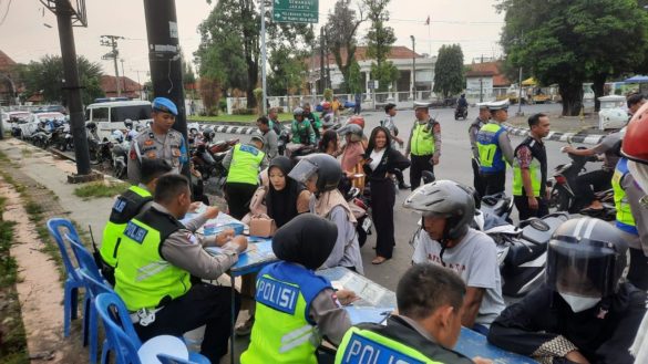 Materi edukasi meliputi pentingnya keselamatan berlalu lintas, kewajiban membawa dokumen kendaraan, penggunaan helm berstandar SNI, serta etika berkendara di jalan raya.(Djn).