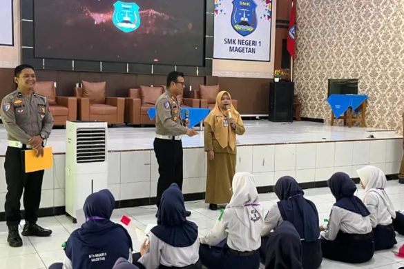 Sosialisasi ini menyasar pelajar dan dilaksanakan di Aula SMKN 1 Magetan pada Selasa (22/7/2025), dipimpin langsung oleh Kasat Lantas Polres Magetan, AKP Ade Andini, bersama jajaran anggotanya.