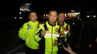 Hibur Pemudik di GT Parungkuda Saat Rekayasa One Way, Personel Satlantas Polres Sukabumi Nyanyi dan Berjoged Ria