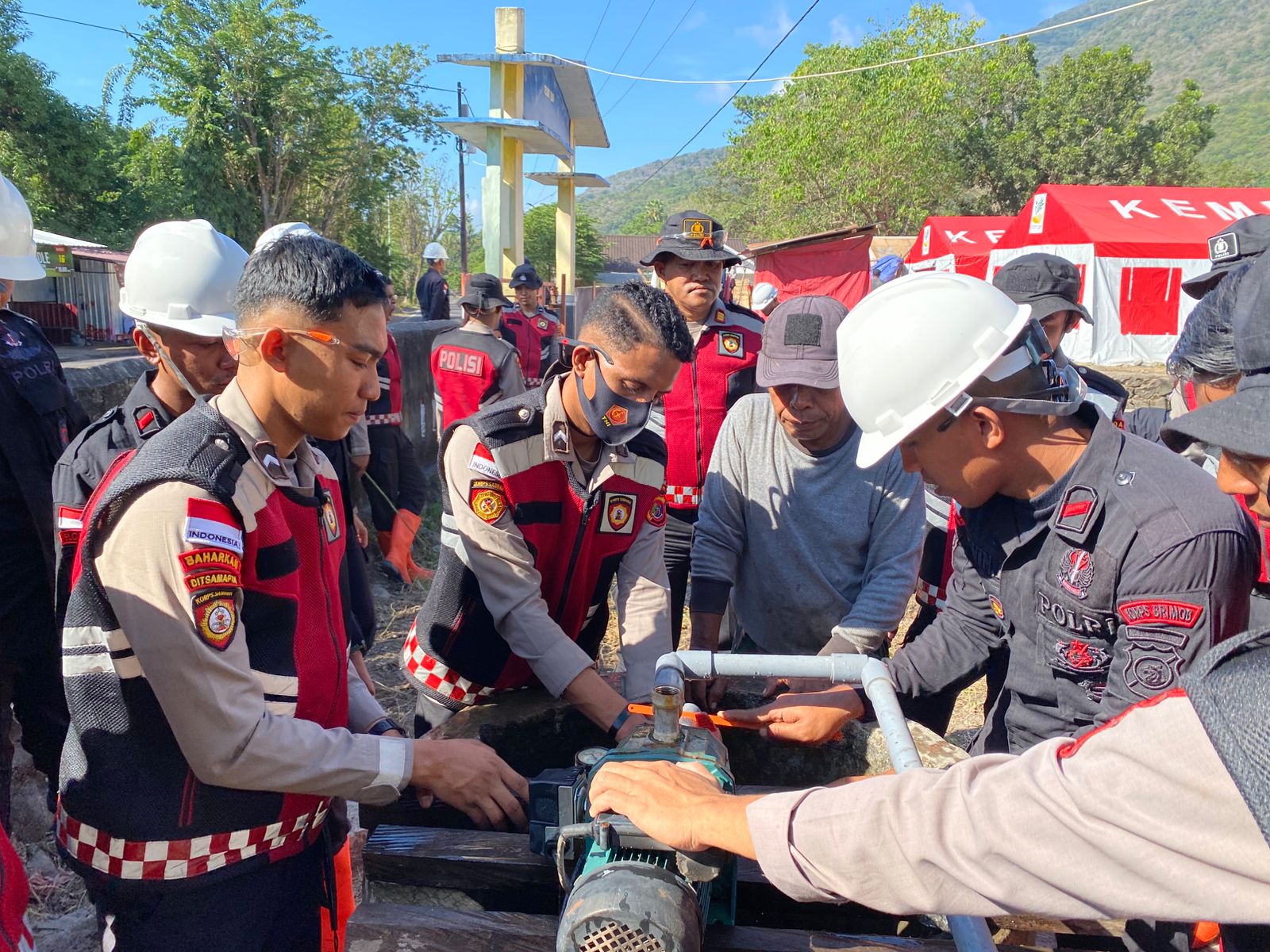Penyerahan dinamo air dilakukan langsung oleh Pama Ditsamapta, AKP Julius Roni Nanlohy Gonstal, S.H. Sementara itu, Danton 1 Kompi 1 Yon B Pelopor Brimob, IPDA Vincensius A. Parera, menyerahkan kabel serta perlengkapan pipa saluran air kepada masyarakat. Sinergi dan kerja keras personel Polda NTT membuahkan hasil pada pukul 12.30 WITA, ketika proses perbaikan sumur selesai dan air bersih mulai mengalir untuk digunakan warga.