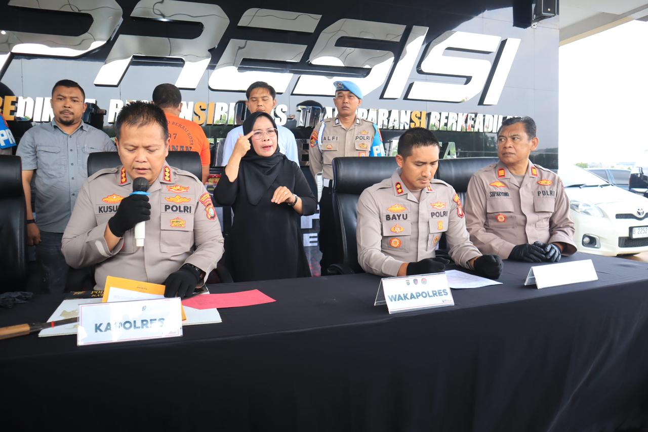 Pengungkapan kasus ini dipimpin langsung oleh Kapolres Metro Bekasi Kota Kombes Pol Kusumo Wahyu Bintoro, S.H., S.I.K., M.H., dalam konferensi pers di Lobi Mapolres, Selasa (30/9/2025) sore. Turut hadir mendampingi adalah Wakapolres AKBP Bayu Pratama Gubunagi, Kasat Reskrim AKBP Braiel Arnold Rondonuwu, dan Kasie Humas AKP Suparyono.