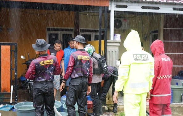 Sebagai respons terhadap kebutuhan mendesak warga, tim dari Direktorat Samapta menyuplai air bersih ke beberapa perumahan yang mengalami krisis air bersih akibat bencana tersebut.