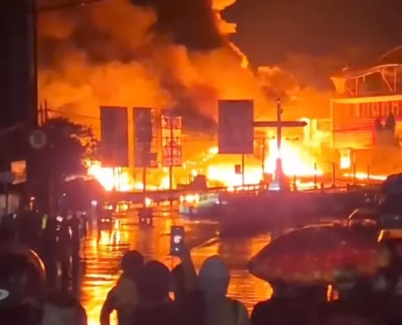 86NEWS.ID – CIANJUR – Kebakaran hebat melanda kawasan Jalan Perintis Kemerdekaan. Cilaku, Peristiwa itu terjadi setelah truk tangki BBM bertabrakan dengan truk tronton, Minggu (2/11/2025). Api langsung menjalar ke pos polisi dua lantai dan membuat bangunan itu ludes.