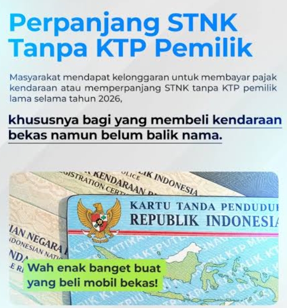 Masyarakat diarahkan segera melakukan balik nama kendaraan paling lambat 2027. “Berlaku nasional dan hanya di tahun 2026 saja, 2027 seluruh kendaraan wajib balik nama,” kata Wibowo dikutip dari CNN Indonesia.