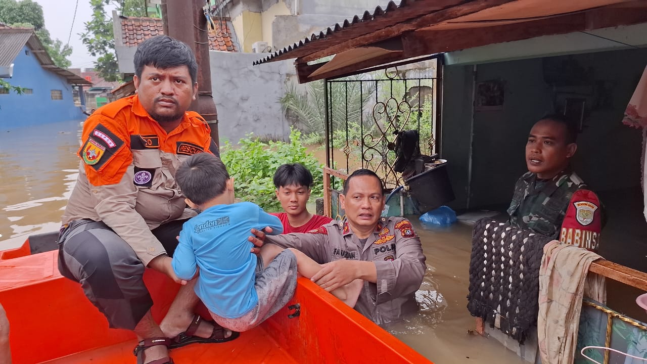 Pada Selasa (4/3/2025), Kapolsek Bojongsari, Kompol Fauzan Thohari, turun langsung dalam proses evakuasi. Beberapa warga berhasil dievakuasi menggunakan perahu karet, termasuk seorang warga yang menggunakan kursi roda.