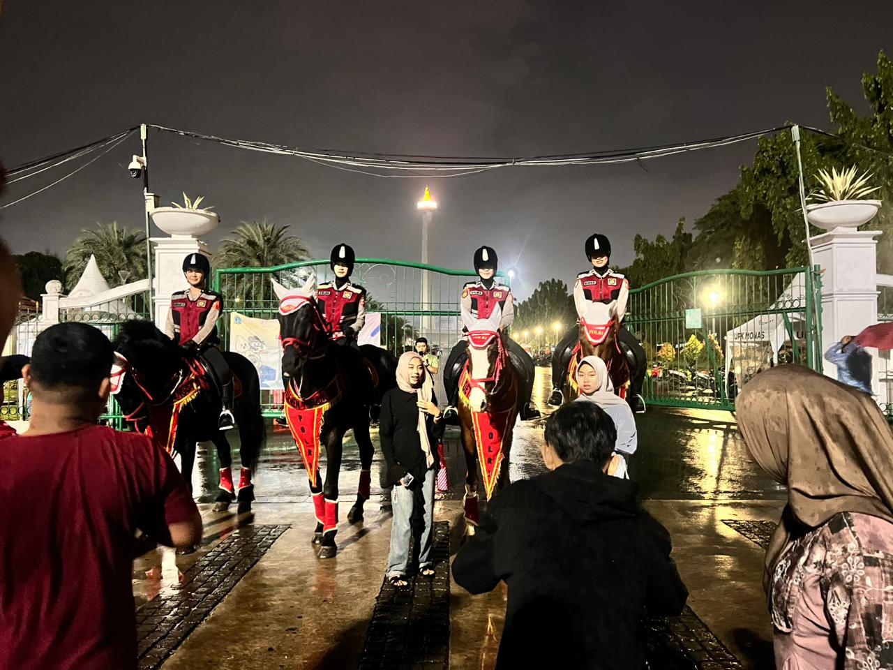 “Kehadiran polisi berkuda ini selain untuk pengamanan, juga sebagai upaya preventif dan pendekatan humanis kepada masyarakat agar mereka merasa aman dan nyaman saat merayakan malam tahun baru di Monas,” ujar IPDA Wahyu Jati Purnawan.